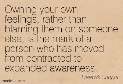 This has been such an eye opening revelations about myself, as I have been blaming everyone around me for my feelings. No one can make you feel bad, only you can allow yourself to feel negative emotions. Our society is full of blame of others for our own emotional wounds and deficiencies. It is always someone else’s fault. I see it everywhere around me, including myself.